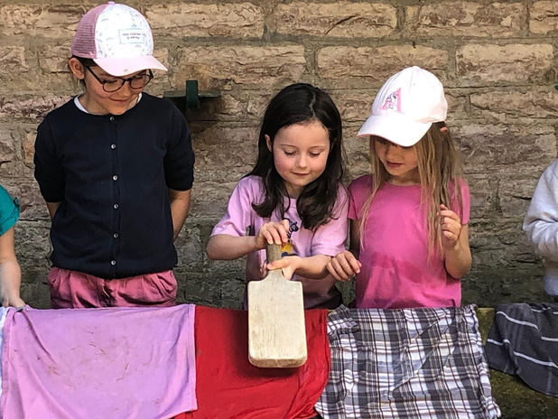Les enfants ont appris beaucoup de vocabulaire qu'ils ont pu mettre en pratique: Les enfants avaient apporté un torchon à laver, ils ont pu frotter, savonner, rincer, essorer et faire sécher leur linge! Une belle expérience pour faire prendre conscience aux enfants des modes de vie d'autrefois
