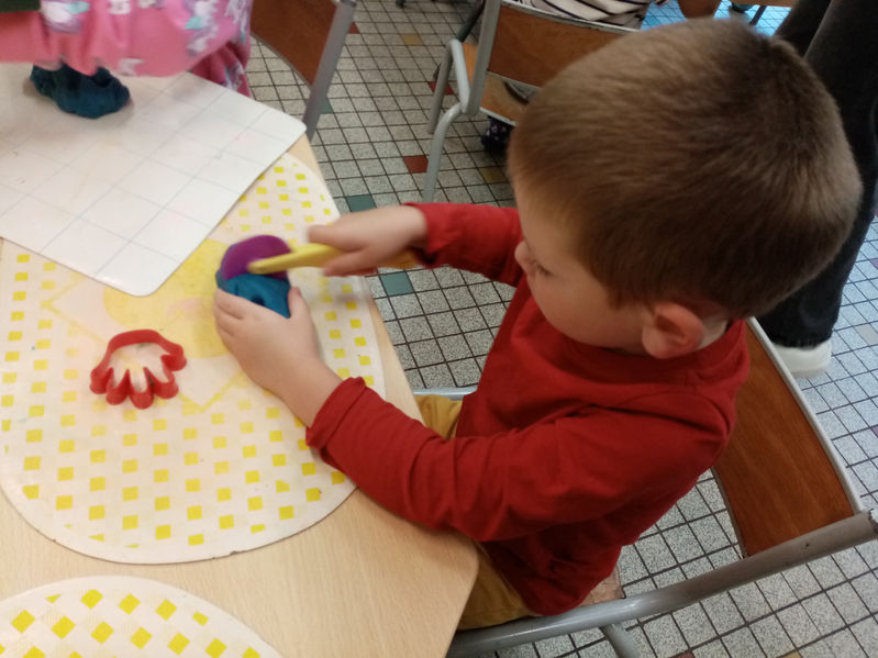 Notre première semaine d'école a été rythmée par la décoration d'un cartable avec des gommettes, par la manipulation de la pâte à modeler avec des outils, par le jeu de la courte paille pour comparer les longueurs et bien d'autres choses...