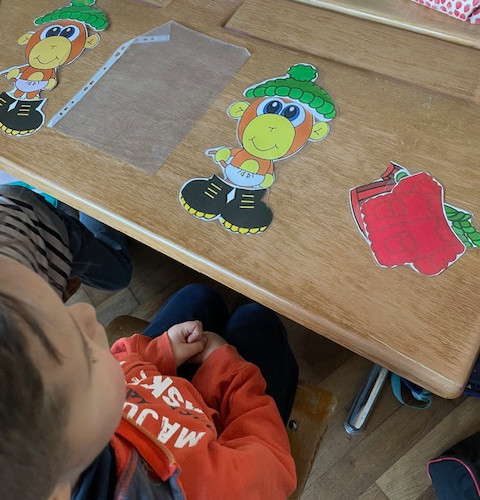 Les élèves travaillent en binôme pour privilégier les échanges en anglais. Aujourd’hui les élèves apprennent à habiller MR MONKEY avec des vêtements d’hiver ! Brrrr it’s cold 🥶 !